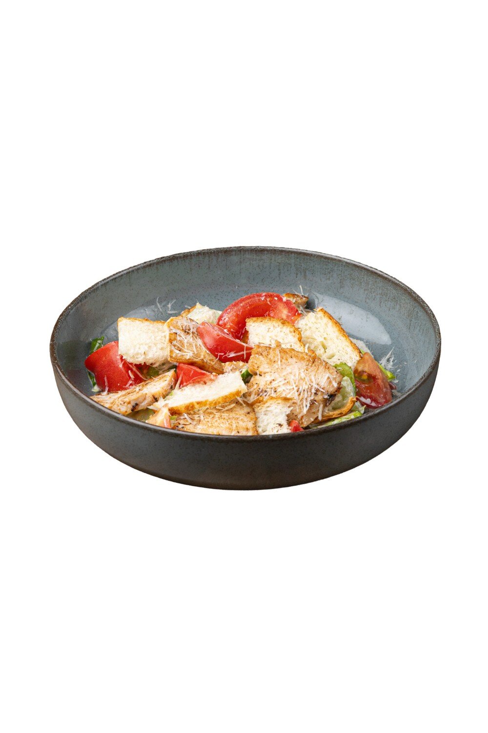 Куриное филе, томаты, соус цезарь, пармезан, микс-сала, гренки